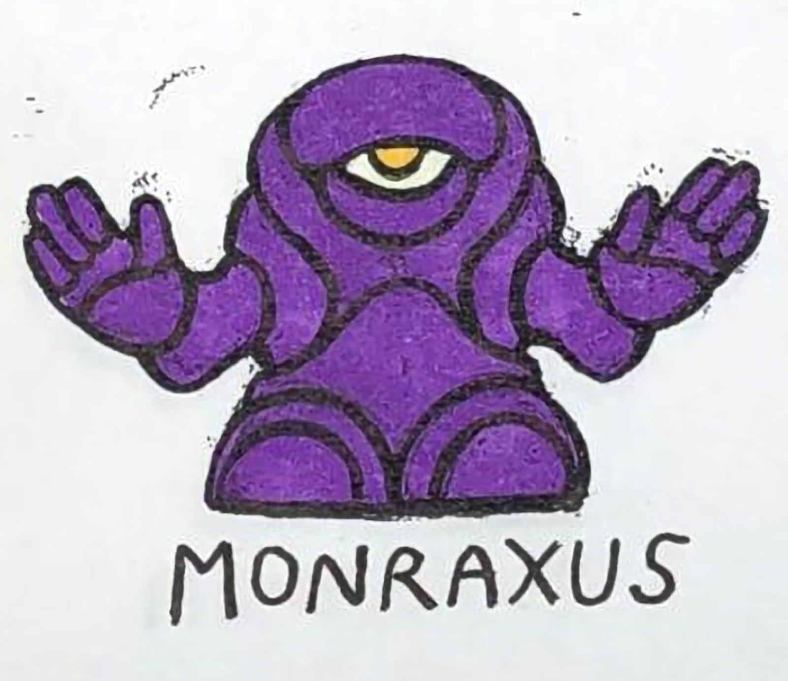 The Monraxus Matt thought of like Grimace (of McDonald's fame) and was envisioned as being larger then the other Saucer Aliens in the line. Matt explained to me that in his mind, the Monraxus had the power to grow and become amorphous (and Matt likened him to the Yellow Devil robot from Mega Man 1).