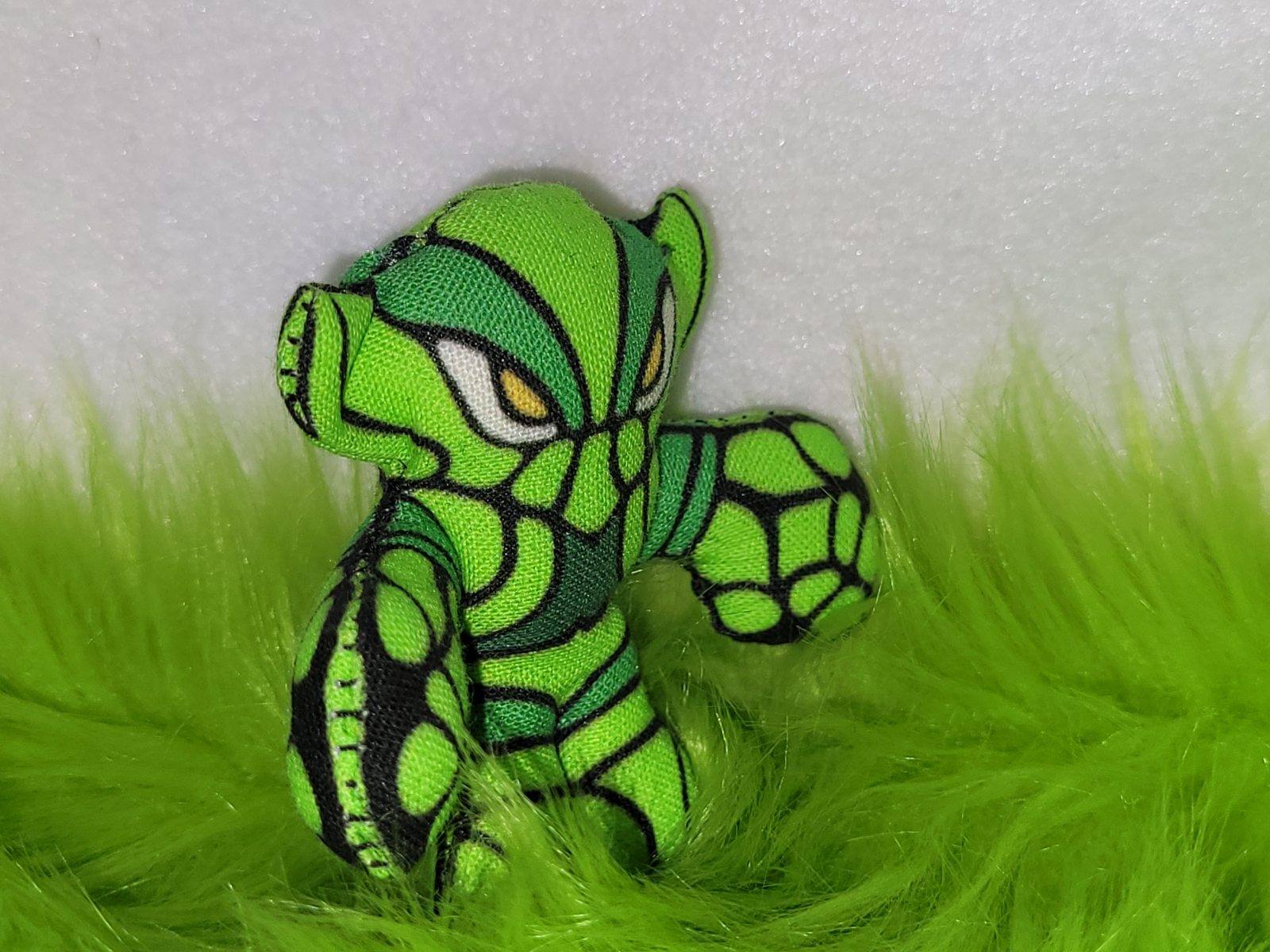 This v2 Qualluros was made using additional concept art drawn by Matt Doughty in late October of 2015. This version of the Qualluros I really gravitated towards so converting it into Fabric Fighterz art happened FAST. I've made a dozen or so home tests to fine tune the pattern for maximum fun, ease of assembly and this is the result. As Rothan is one of my favorite Glyos colorways AND March has St Patrick's Day, I felt making them in Rothan green would be a fun way to celebrate the holiday and get these guys out there for people to enjoy.