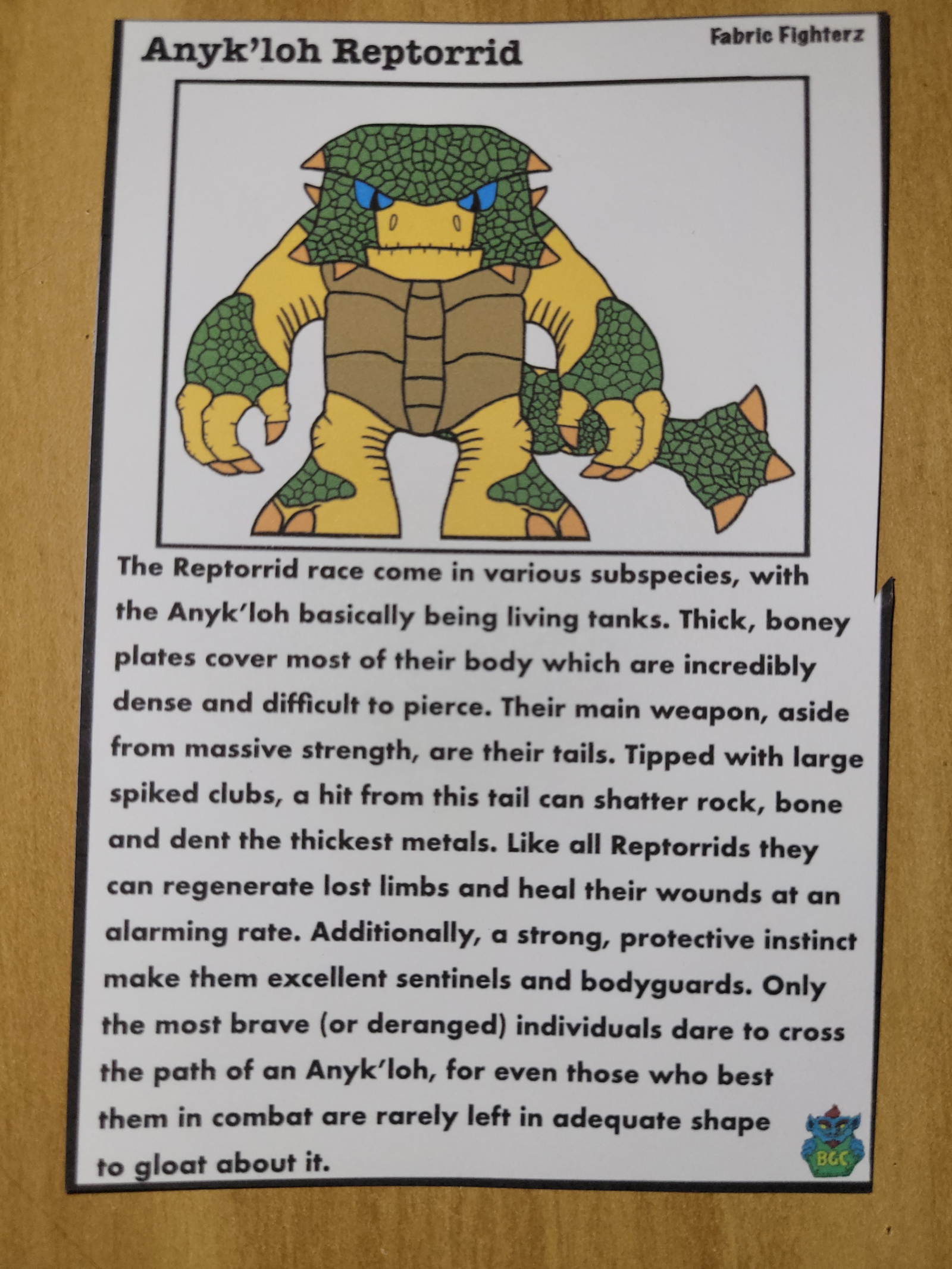 The first test worked out so well, I ordered a yard of them on fabric to sew up. I wrote out a bio card, changed Anyklorn to a sub-species of the Reptorrid called The Anyk'loh, and then decided against releasing them, pulling them from the release schedule. While going through my fabric in December of 2025, I found the unsewn fabric, decided sew them up for purchase to see what you all think.